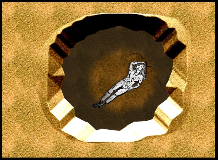“Was I dreaming about the whole thing?” Jennifer silently questioned herself. She looked up at the hole she had fallen through, squinted as the light hit her eyes, and then gripped the sides of her head and screamed, rolling off the mound, away from the light.