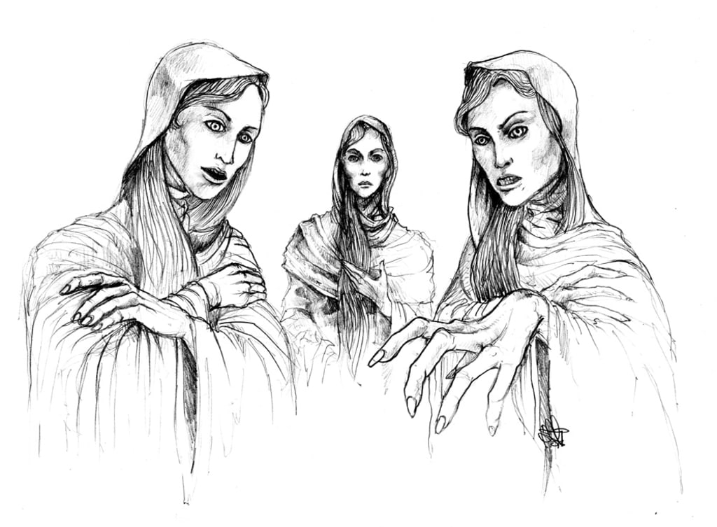 Then the youngest and most beautiful of the three women spoke up; her voice echoed with a certain care and gentleness that was lacking from the similar, yet distantly cold voices of the elder two. As opposed to them, this youngest woman addressed the child directly, and her words resounded like a lullaby; and truly, the child fell asleep without a sound just as the woman voiced her final words.
