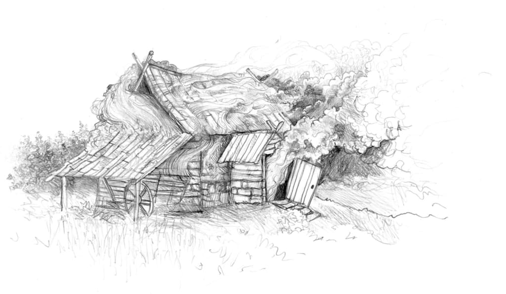 The flame had already engulfed the wooden roof, underneath which lay stores of straw to hold the house’s warmth during the cold nights. No one was there to put out the fire; no one was in front of the house. Suprisingly clearheaded, Senka remembered the three large straw mattresses; one on which her father and stepmother slept, another which she shared with her sister, and a third one which was generally empty, intended for expected and unexpected guests alike, who could always assume, as was fitting, that they would be welcomed with hospitality. The wooden table, the wood chairs, stacks of firewood, linen curtains in wooden frames that served in place of walls… their home had been an unlit torch which was now ignited. But, how? To Senka it seemed that, along with the wooden walls, the flame was consuming even the stone foundations which had measured her growing up (the day when she had realized that the stones no longer reached even up to her waist she still remembered fondly); maybe the flames were licking at the old straw, mixed with mud, which had been pushed into the cracks between rocks to keep the weather outside? Or maybe that was just the impression made on her by the fire which now pulsed everywhere through the window frames, those familiar frames small enough so that not too much heat would escape when the wooden shutters were closed, yet large enough to let daylight into the house. A house which was no more.