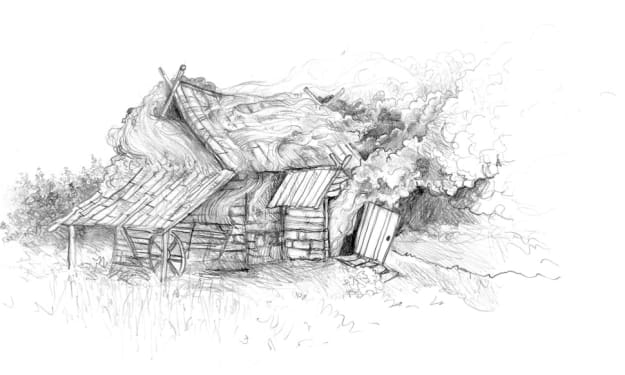 The girl did not immediately realize her loss of sight. For a moment, she thought that she had simply fainted, as happened from time to time; then she thought that it had somehow quickly become night, that everything had just been a nightmare, and that she was safe and sound in the darkness of her own home, wrapped in a swathe of warm blankets, while her sister slept to her right, warming her body. Darkness? The flame in the fireplace must have gone out. For a while, her mind was fleeing from reality. Then she remembered the house in flames, the blazing fire which she still heard, but could no longer see. She reached out with her hands, desperately hoping to find the softness of her own bed, but her hands only grasped the air, and Senka realized that she was standing. Her nostrils filled again with the overpowering smell of things burning, and she coughed against the smoke. She wanted to turn away, but her legs fell out from under her. She collapsed to her knees, leaning with her hands onto the cold ground, the soil somehow fresh despite the sun and the fire, those warm blazes which she could no longer see. There was something so consoling in this ground beneath her fingers; the thin grass was pleasant to the touch, and Senka, for the first time in her life, simply wished to not exist.