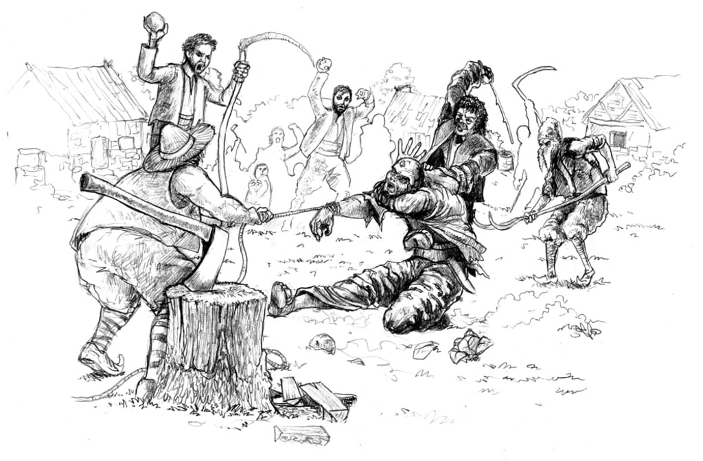 “Hey, villagers, hear me out!” Žarko’s booming voice rose above the noises and in a moment there was silence, the people all turning their heads towards him as if under command. Then the mighty man continued: “Tell me, who among you knows to read and write? Who of you has read the books of old?”