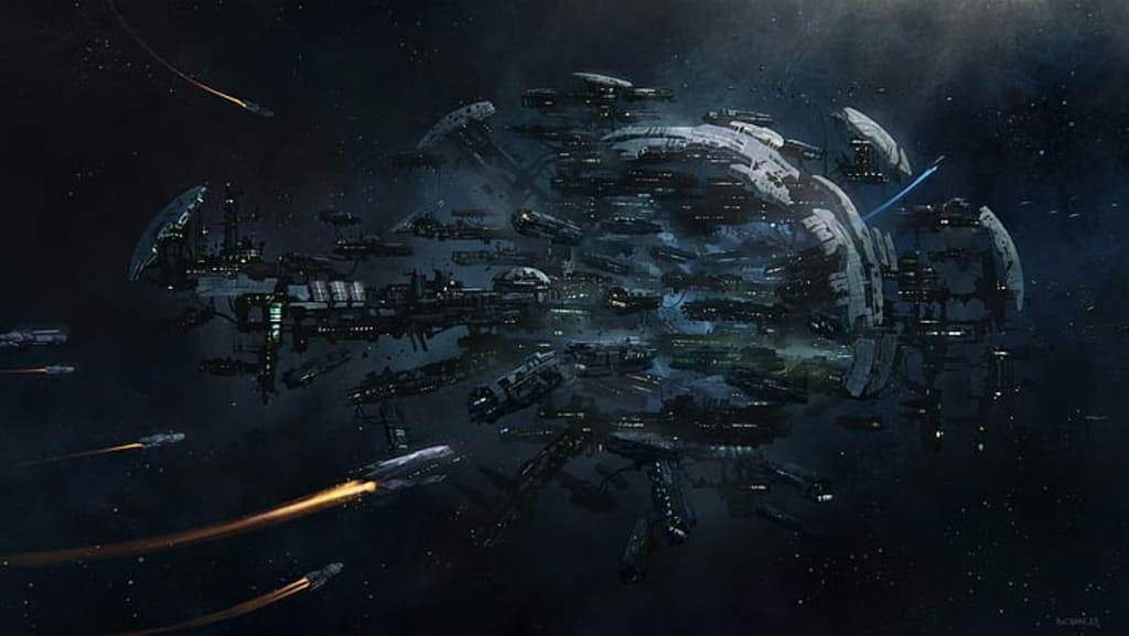 As I enter the room I realize no one is in the immediate area, so I just decide to wait here until I see him. I look out his window at the vastness of space and marvel at the glorious ships LB-2 and LB-3 as they are traveling right behind us. Who would have thought a race as primitive as us could develop ships this grand in the year 2350? As I’m looking outward, I see 3 Sentinel Space Guards repairing a small breach on the hull of LB-2.