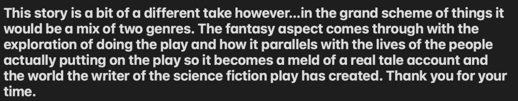 Leoni, "Look, Lo-Fi Fairytale is a pretty out there play, I get it. But if we are going to have rehearsals done by the 27th then we need to get this blocking situated and that includes your performance. You need to make these dragon's hot! And I am not hot yet."