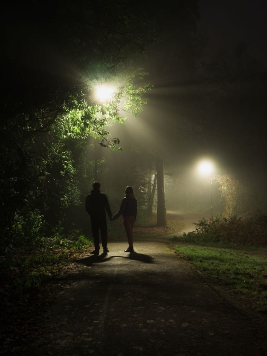 Soft breeze rushed past them, as the shadows of the spaced trees' leaves subtly shook, forming patches of shade under the miniature reign of lamplights.