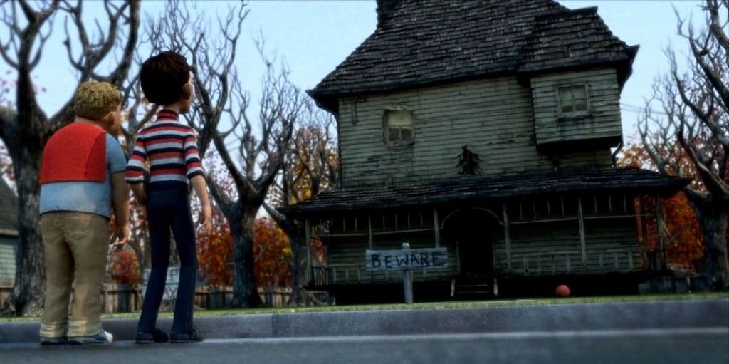 Once upon a time, there was a mysterious house deep in the heart of a dense forest. The house was known as the "Monster House" and it was said to be haunted by a terrifying creature that lived inside. The villagers avoided the forest, and no one dared to go near the house.