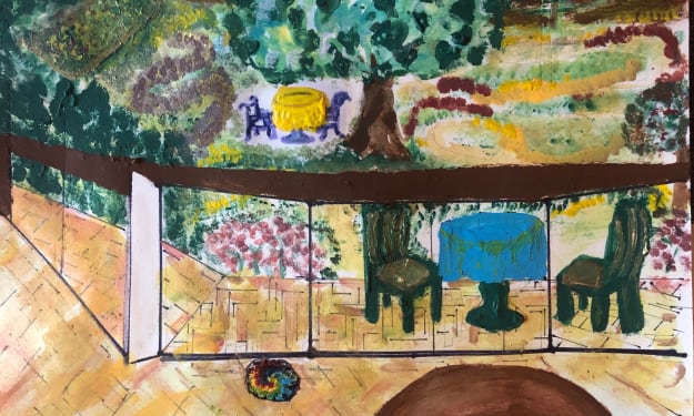 Asp looked up from lowered eyelids. The wide eyed innocent child looked up and with an internal beauty, an essential optimism, and playfulness as a means of active defence, she released ideals of perfection. Asp’s hard outside amber veneer softened. She saw Asp resembled the trembling leaves of an Aspen. She looked into his eyes, that sparkled and in this moment, held the effect of a true smile. Golinda's awareness reflected the illumination of wisdom that was older than the tree of Methuselah.