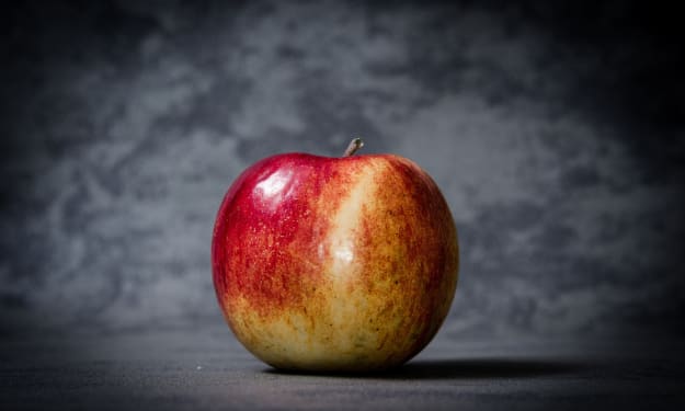 Adam left his cart to retrieve the renegade apple. He walked across the aisle and up to the display. He bent over to pick up the apple. Just as he was about to pick it up, he became transfixed with the apple, pausing for a moment then picking it up. Adam stood up with the apple in his hand, never taking his eyes off it. He stood still as if time stood with him. A store clerk asked, "Sir can I help you?" Adam gave no response. He just stared at the apple. The young store clerk shrugged and went about his business.