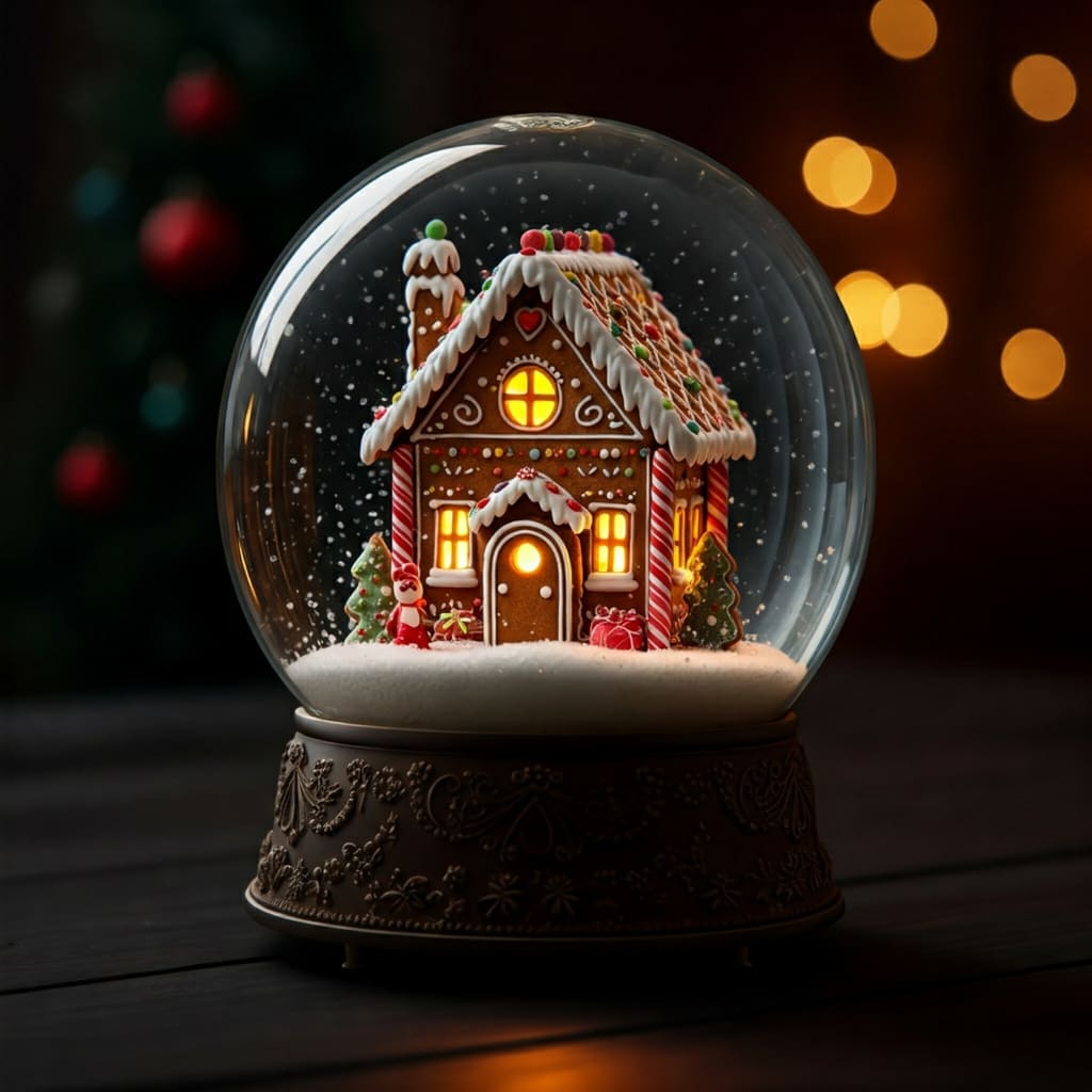 Description: A seemingly ordinary snow globe, the size of a grapefruit, containing a miniature gingerbread house within. The house is exquisitely detailed, with frosting trim, candy decorations, and a warm, inviting glow emanating from its windows. Upon attunement, the snow globe reveals its true nature as the Baking Hag's Magnificent Gingerbread Mansion.