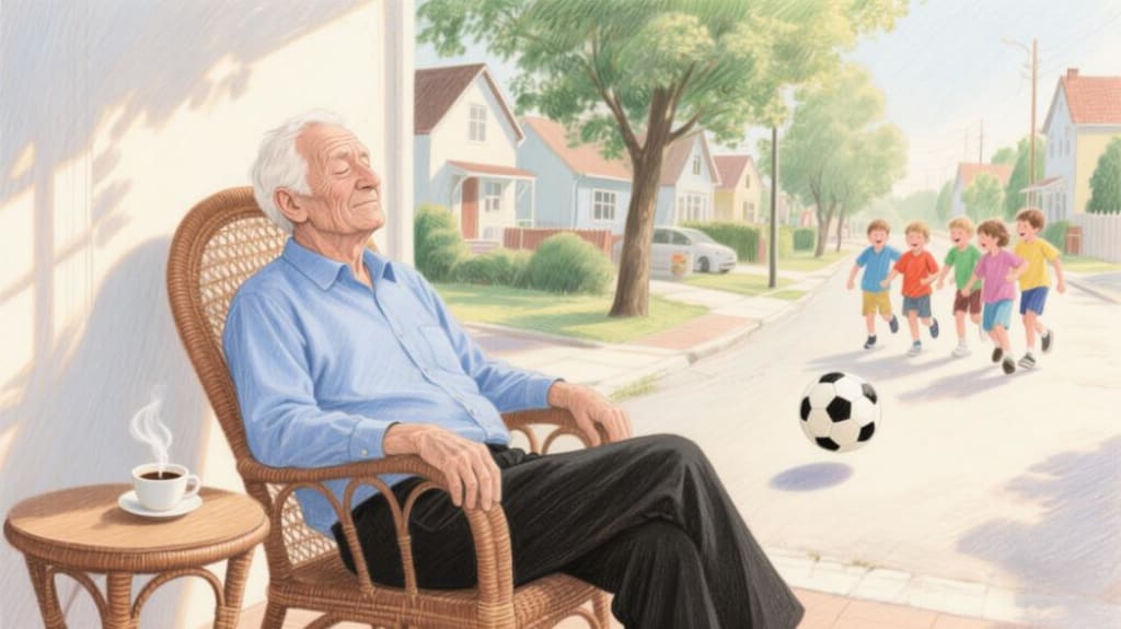 One day, a group of rowdy children appeared at his doorstep. With the carefree abandon of youth, they began to play football right in front of his house. As the ball thudded against the ground and their laughter and shouts filled the air, the old man's attempts to nap were shattered. Each day at noon, like clockwork, the children would return, their energy seemingly boundless and their disregard for the quietude of the neighborhood apparent.