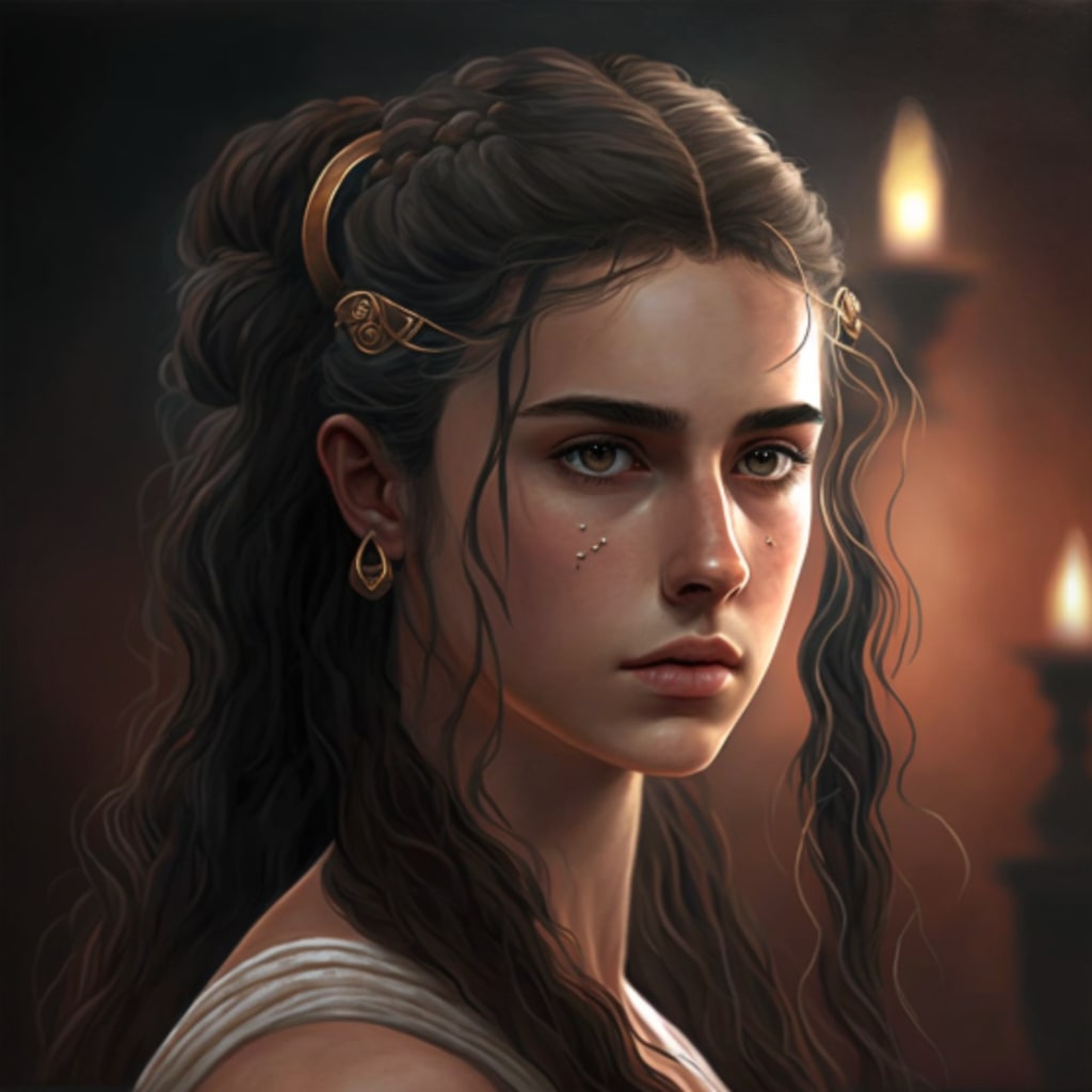 Isabella was known throughout the village for her striking beauty and kind heart. She had long, dark hair that cascaded down her back in loose curls, and her eyes were the color of dark chocolate. She was always dressed in the finest clothes and jewelry, thanks to her father's successful vineyard business.