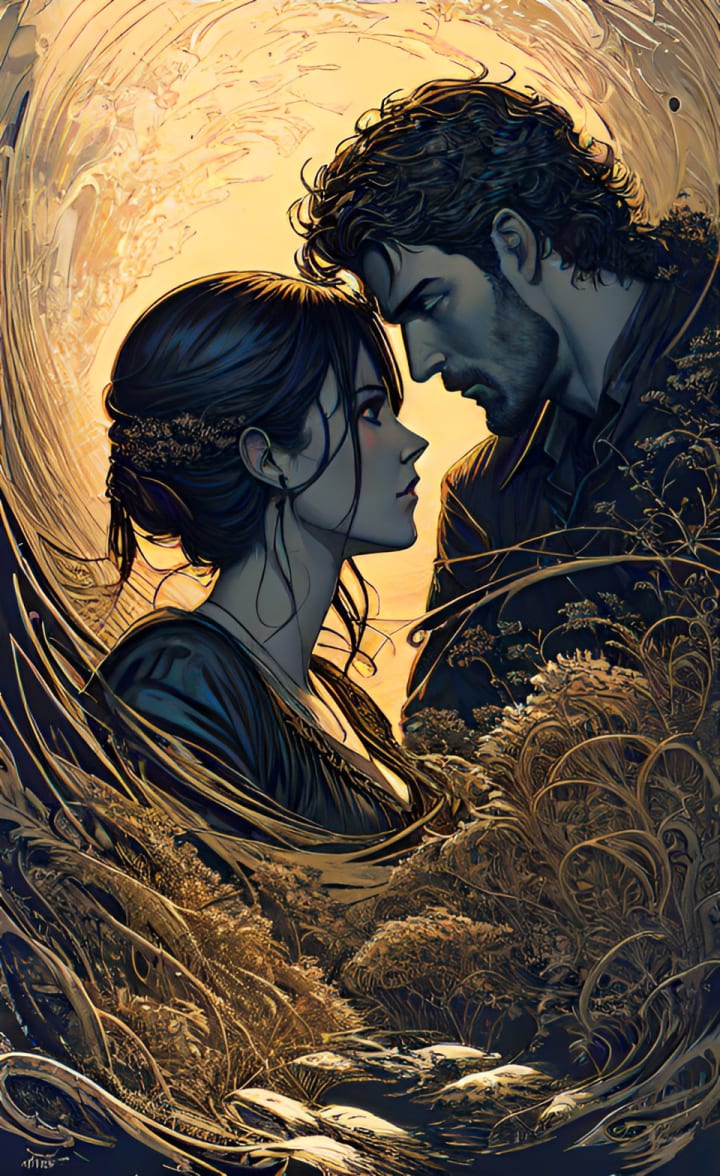 She tried to explain, tried to apologize, but he turned away, his newfound form a painful reminder of the curse that now consumed him. As Isabella gazed into the eyes of the man, their expressions mirrored both longing and regret. A silent understanding passed between them, an unspoken agreement to carry their burdens together. And as they stood there, side by side, in a heavy voice, "Adam", he said.