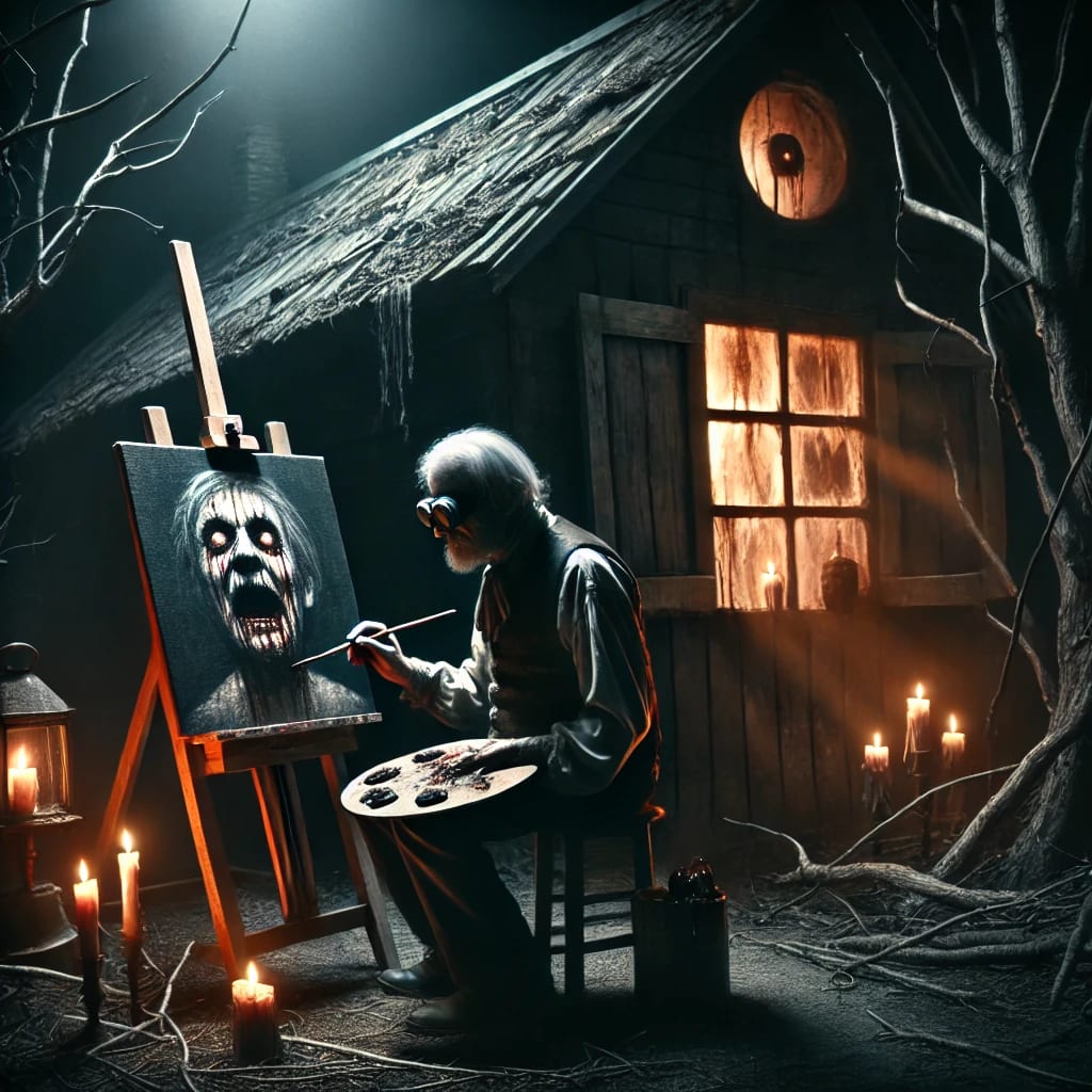 He worked feverishly on a new canvas, his bony hands dragging the brush in frantic strokes. The men froze when they saw what he was painting.