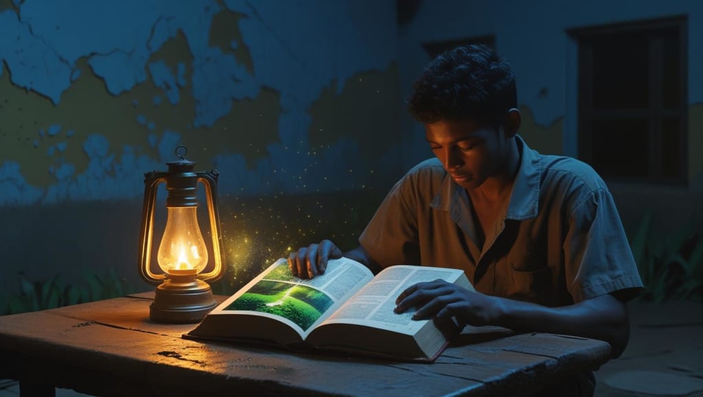 In the shadow of a crumbling town called Harrow’s End, where factory smoke choked the sky and dreams withered like autumn leaves, lived Elias, a young man with tired eyes and a heart heavy with doubt. The town’s people scraped by, their days filled with endless shifts and their nights with worry. Books were rare in Harrow’s End—relics of a brighter past, tucked away in a forgotten community center. Elias, a mechanic’s apprentice, had little time for such things. His world was gears and grease, not words.