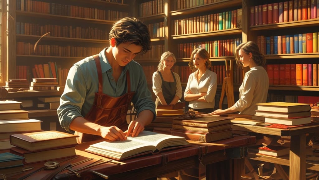 Inspired by Arthur's legacy, Elias has an idea. What if he could revive the bookbinding workshop and, in doing so, rekindle Havenwood's love for books and learning? He starts by researching bookbinding techniques, using Arthur's tools and the instructions found in his journals. It's a challenging process, requiring patience and meticulous attention to detail, but Elias finds a sense of purpose he hasn't felt before.