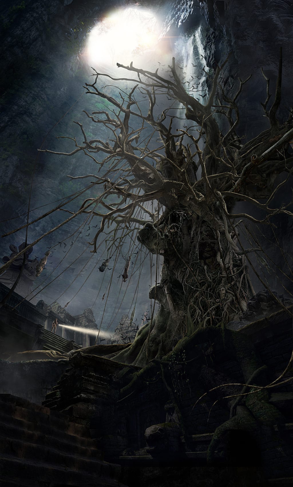The tattoo guides Erin to the Lost Tribe in the tree canopy. Native elders with two living emerald eyeballs play ancestral memories on a resin record: “In the seventies the oil companies took away walking amber with the heart of the Breath Harmonizer sealed inside”
