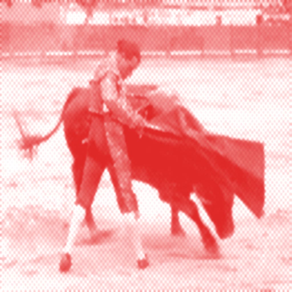 The matador bends his hips and begins whipping the cloth in perfect form, making it snap at the ends as if it were a latigo, taunting the beast, making it angrier and angrier. He grins with utmost confidence. He wants the beast to charge at him. There is beauty to the silence between them. The wind makes waves of the looseness of his shirt and jacket and makes the short hair on the beast’s fur look like the dancing grass when the gusts hit a field.