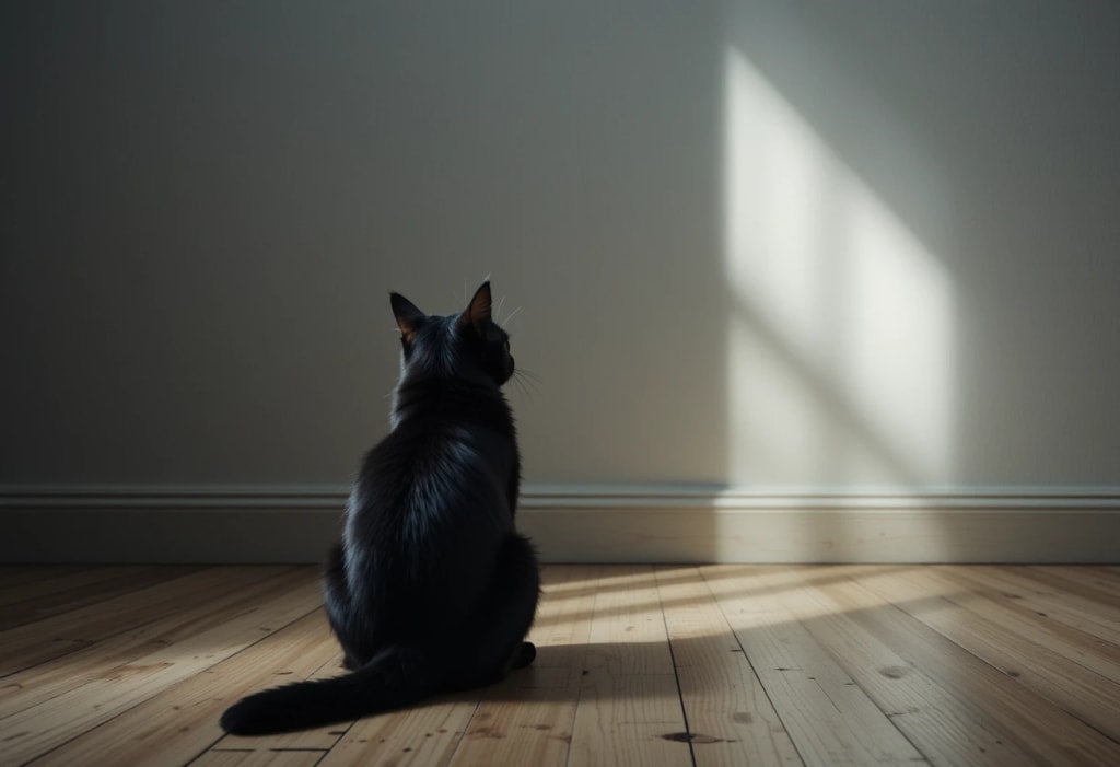 Every night around 9:30, Cashew would sit in that same spot, staring at that same corner, and let out a series of focused, deliberate meows. Not the hungry kind. Not bored or playful.