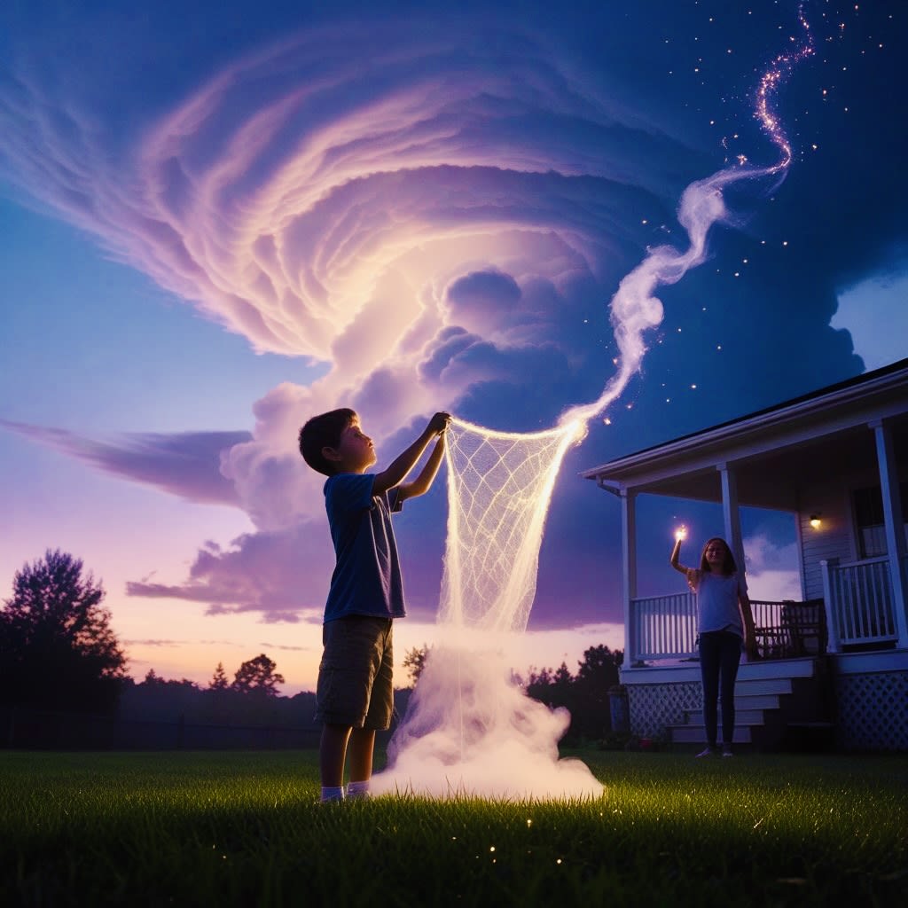 The cloud hovered above him now, its shadow stretching over the entire yard. Noah raised his net as high as he could. The wind screamed through the trees, pushing against him, but he stood his ground.