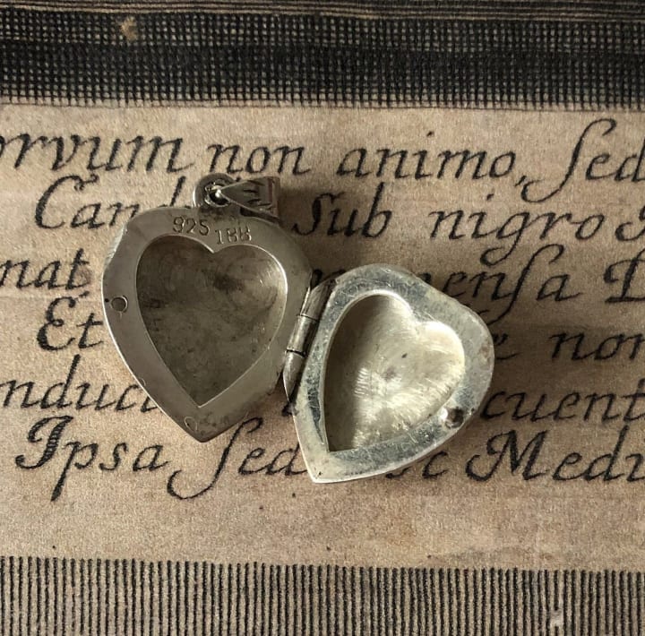 The old woman pulled out a sterling silver-heart-shaped locket and placed it into Chloe’s hand. Grandma this is nice but . . . I’m not a little…”