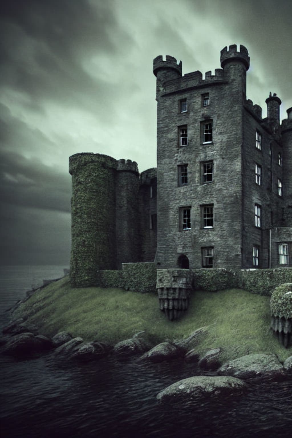 There was a grand and imposing castle on a remote island, shrouded in mist and mystery. The castle was said to have been built by a wealthy and eccentric nobleman, who had grown obsessed with the occult and the dark arts. The nobleman, Lord Blackwood, had spared no expense in constructing the castle, using only the finest materials and the most skilled artisans. He had even brought in masons from abroad to carve strange and grotesque figures into the very stones of the castle walls.