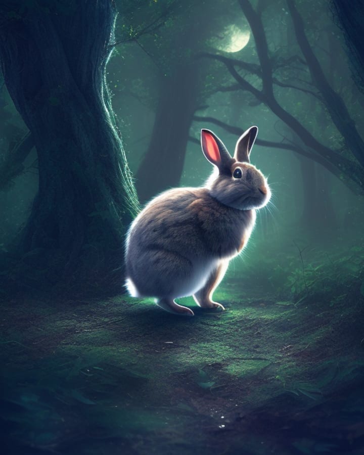 The flashing eyes of her fox kin shone back at the small rabbit. With a yip they began the chase. The rabbit ran into the forest as Kitsune’s laughter echoed through night.