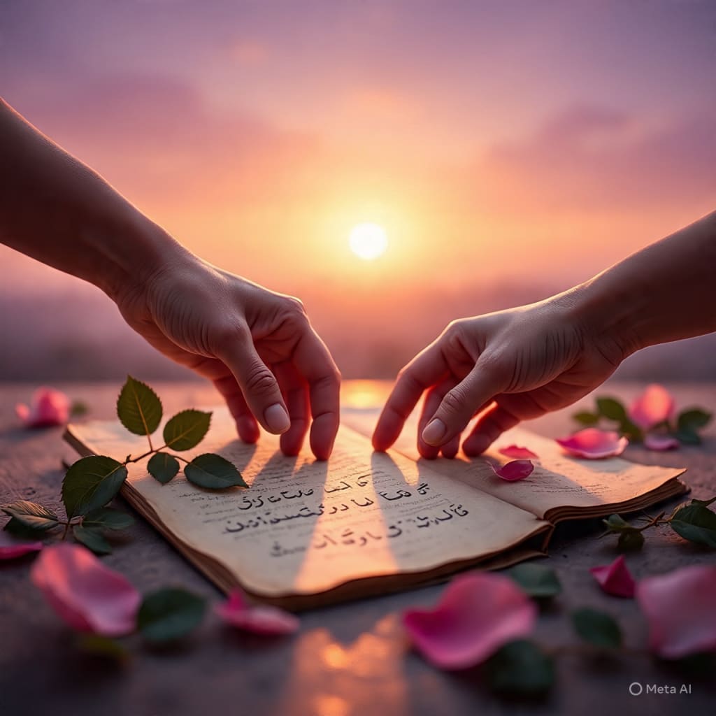 Its pages fluttered slightly in the breeze — yellowed at the edges, the ink smudged but still legible. Urdu poetry danced across it, flowing like the quiet breath of someone still waiting.