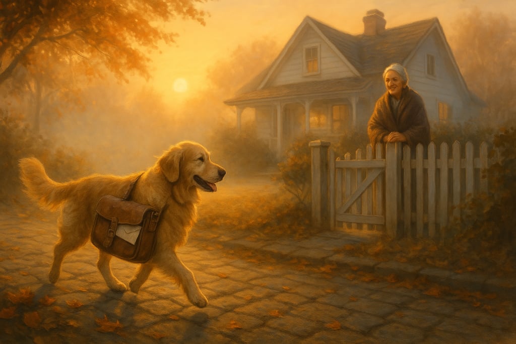 Buddy passed away peacefully weeks later, in his sleep, curled up beside the mailbag. He had delivered every letter.