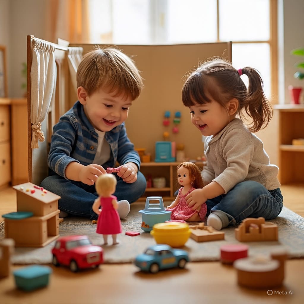 Mira, all of seven years old, was the queen of the dollhouse. She wore a paper crown made from yesterday's newspaper and held her favorite doll, Annabelle, a soft, wide-eyed figure with golden curls and a periwinkle dress. Next to her sat five-year-old Arya, her cheeks rosy with joy as she clutched a teddy bear-sized doll named Momo, dressed in pirate garb. Their little brother Rohan, who had only recently turned four, was the proud "doll taxi driver," rolling around a toy car that frequently shuttled Annabelle and Momo from the "bakery" on the first floor to the "spa" on the third.