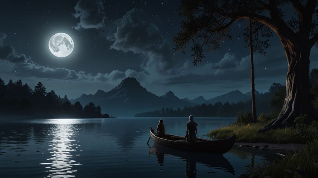 In a distant land, nestled between the towering peaks of the Silver Mountains, there lay an enchanted lake known as Lunaris. The lake was unlike any other, for its waters shimmered with the soft, ethereal light of the moon, even during the day. Legends whispered that Lunaris was a gateway to the realm of the moon, and its waters held ancient magic, capable of granting wishes to those who were pure of heart.