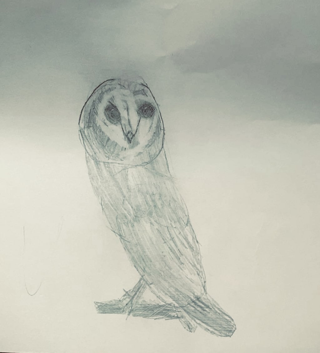 I've never seen a barn owl before. It was amazing to watch and take in all the distinct colors. The face was all white and made almost a heart silhouette around it. Outside of that, the color changed from gray and tan with speckled brown spots here and there. It really was a magical creature. I was scared to move because I was worried it would fly away again. The distraction of the barn owl was enjoyable. It kept my mind from wandering back to that dark place. Sadly the owl flew off into the night a few seconds later. I was forced back into my gloomy reality.