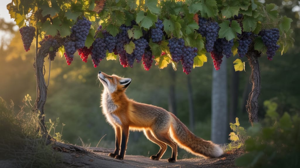 As she walked, she convinced herself that she didn’t need the grapes at all. She was, after all, a fox — too clever to waste time on something that didn’t want to be caught.