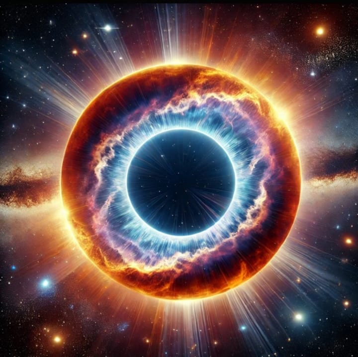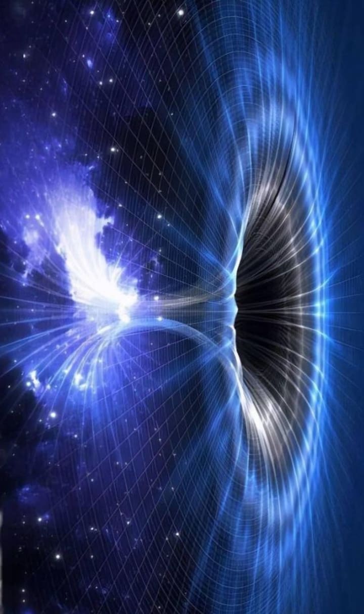 This mesmerising image captures the beauty of a theoretical warm hole, a glowing portal of cosmic energy connecting distant realms of spacetime. Surrounded by vibrant hues of blue, orange, and white, the warm hole radiates stability and power. The backdrop features a stunning array of stars, nebulae, and interstellar dust, reflecting the vastness and wonder of the universe. This depiction invites the viewer to ponder the mysteries of warm holes and their potential as gateways to the unknown.