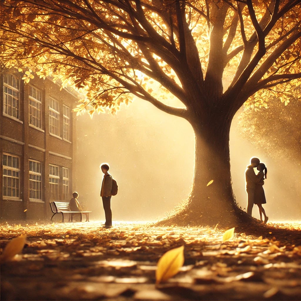 The next day, I saw you standing with them under the big tree behind the school. Sunlight streamed through the leaves, painting golden patterns on your shoulders. You laughed as they brushed a stray leaf off your hair. The scene was like something out of a dream, but it wasn’t mine to claim.