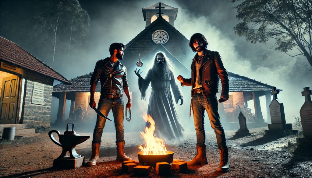 The ghost of Father Elias appeared again, this time more enraged than ever. He lunged at Jane, but Bharath and Charan fought him off with everything they had, buying precious moments to destroy the pendant. Charan grabbed the pendant and hurled it into the blazing forge. As the silver melted away, Elias’s ghost let out a piercing scream, his form flickering and disintegrating before vanishing entirely.