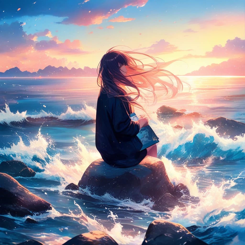 As she traced the horizon line across her paper, a sudden breeze tore a loose page from her sketchbook. It twirled, danced, and escaped—carried by the wind toward the far end of the beach, where someone stood she hadn’t noticed before.