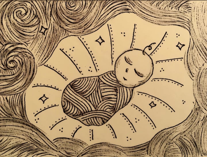 “This child was born from the heavens," the angel spoke in an ancient, wizened voice. "Treat her warmly and she will give you light to see by even on the darkest night. She has a heart made from the warmth of the sun. Eyes made from the hope of the stars and a voice made from the lullaby of the moon.”