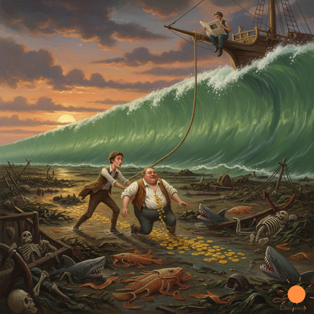 Presently, away on the western horizon, I saw the sea coming back. It occurred to me then that I did not wish it to come back. A tidal wave is nearly always wet, and I was now a good way from home, with no means of making a fire.