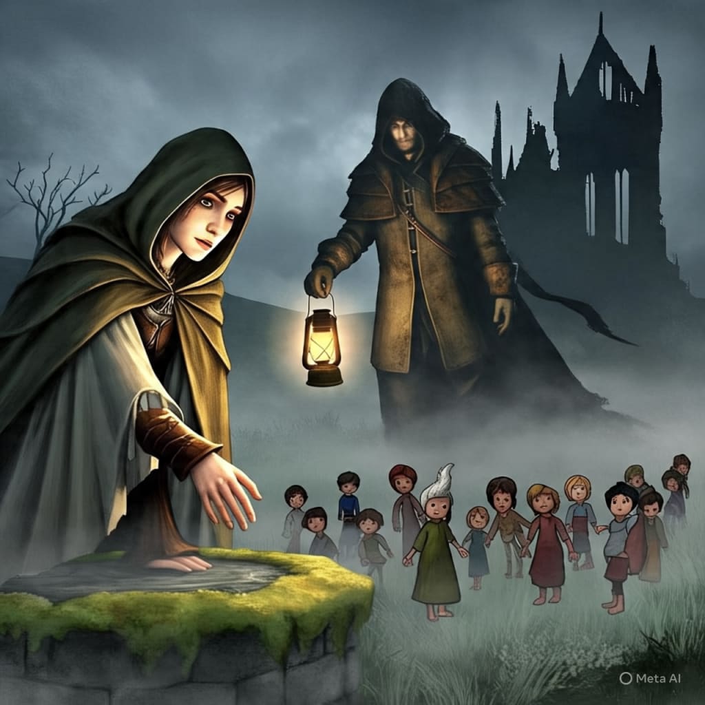 “There,” she pointed—a sunken pit, half-covered by stones and overgrown thorns. Kneeling beside it, she pressed her hand to the ground.