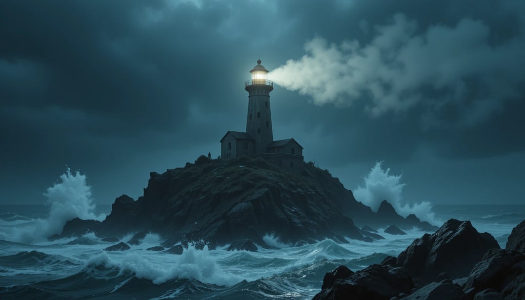 In a lighthouse on a storm-battered coast, a keeper’s journal reveals a mystery that blurs the line between sea and sky.