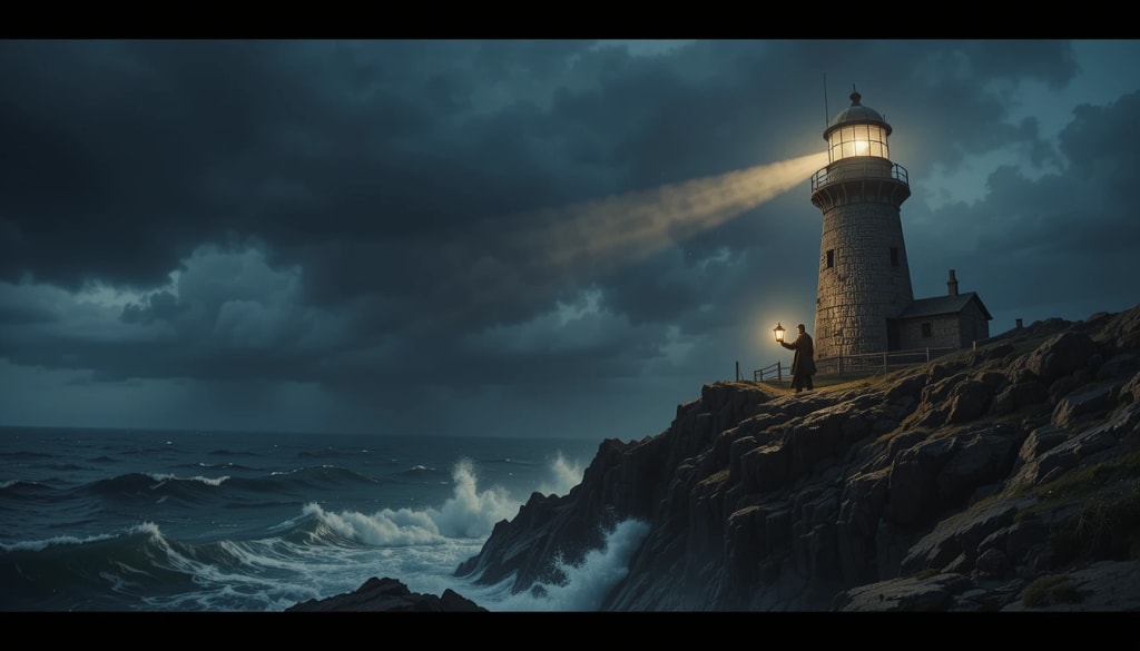 Each evening, Elias walked the coast with a sack of lanterns slung over his shoulder. He’d light them one by one, his fingers steady as he struck the match, his breath mingling with the smoke. The townsfolk watched from their windows, their faces pale in the gloaming, but they never spoke to him. Not anymore. Not since the night the lighthouse failed.