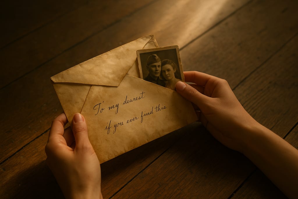 The envelope was worn, its edges curled like forgotten memories. Clara found it under a loose floorboard in her grandmother’s attic, tucked beneath dusty photo albums and an old patchwork quilt that smelled faintly of lavender and time. The handwriting on it was delicate and trembling with age—her grandmother’s, but younger.