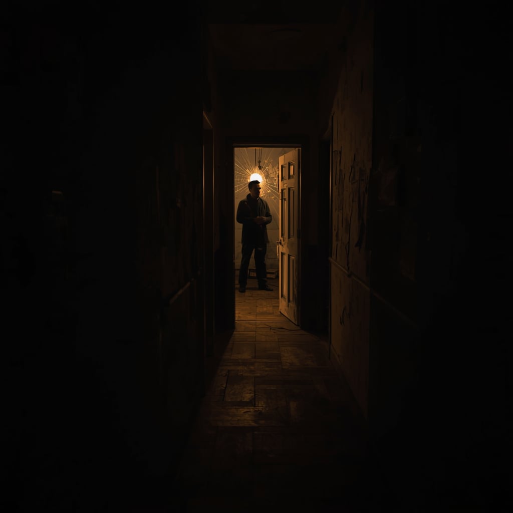 Upstairs, the hall was lined with faded wallpaper, peeling in thin curls. The boards complained under his weight, as if they remembered him. At the far end, Room 6 stood open.