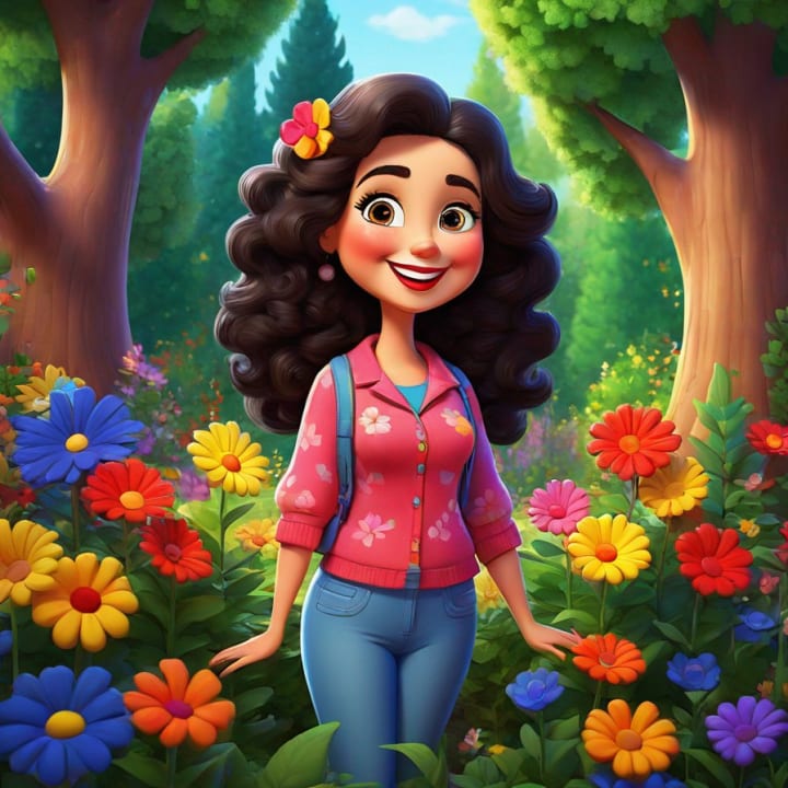 Among high trees with gorgeous blossoms everywhere, Miss Bellbottom took the girls to a comfortable location in the garden. She went on, "Long ago, I found a magic spring deep inside the forest," almost inaudibly. "This spring was able to make flowers bloom and animals thrive, but it was hidden behind a secret door that only opens once a year-on the night of the full moon." Peaches hunched over further to hear and Patches' eyes widened in anticipation.