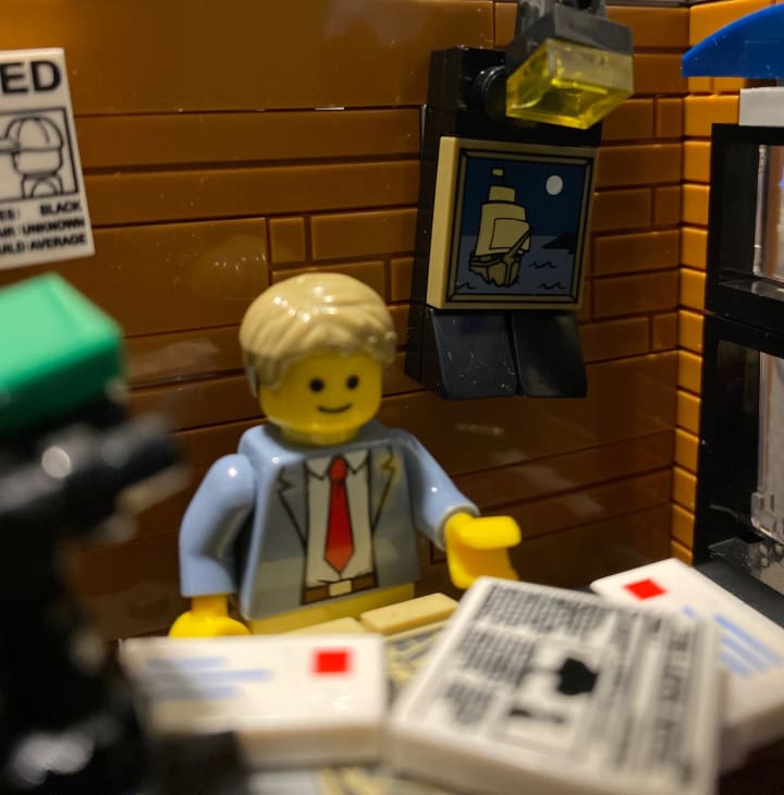 To read more about the origins of Ace Brickman, Lego Detective, please look up the story "The city built on a broken baseplate".