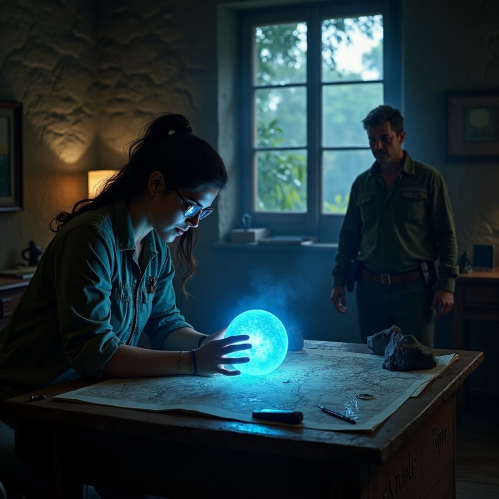 Back in her cluttered study, Lena examined the orb under a magnifying glass. It pulsed with an eerie, otherworldly light, as if alive.