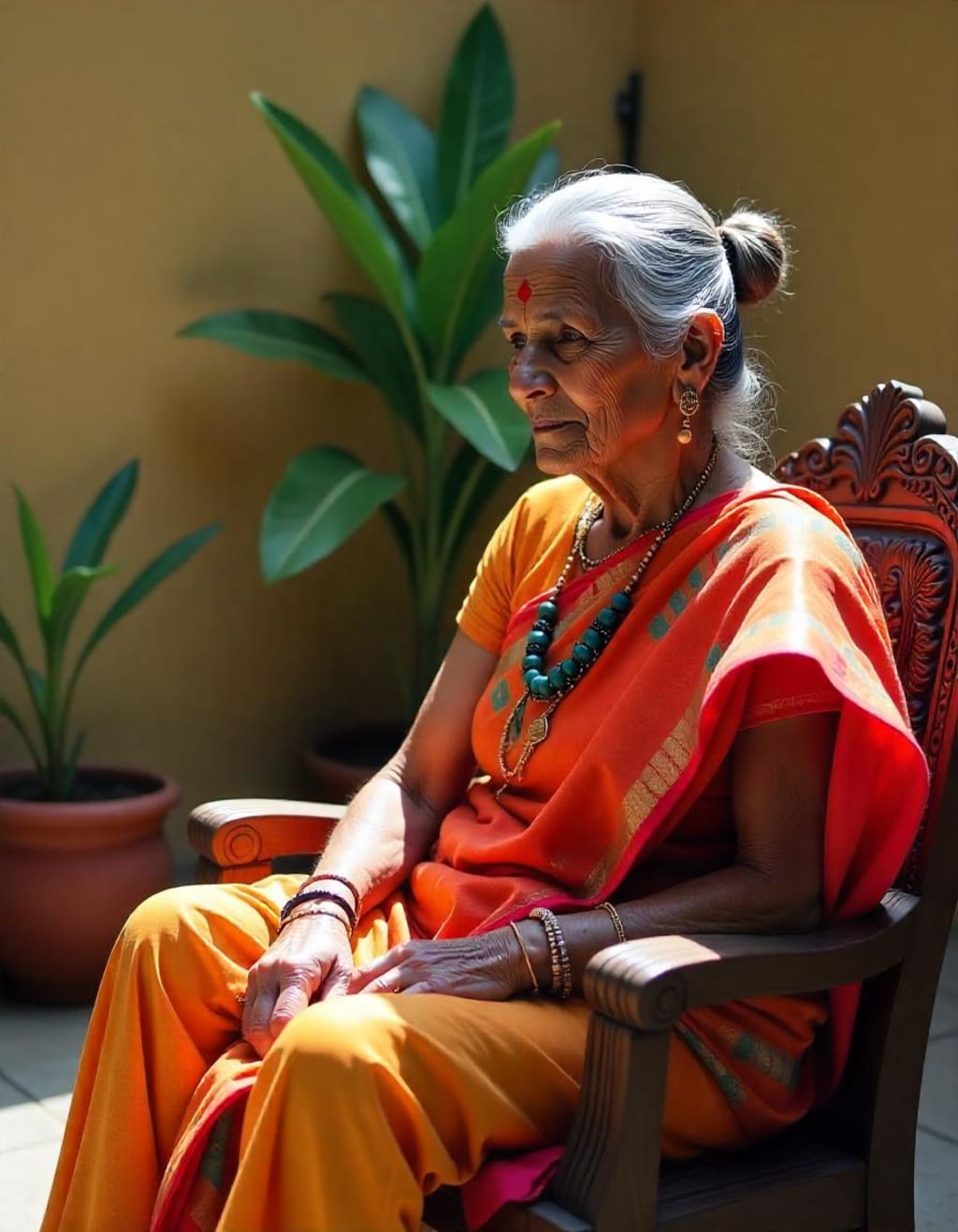 Her face, lined with the years, often wore a thoughtful expression, a portrait of the thoughts endlessly circulating in her head. She was not much interested in the news of her age, instead, she liked listening to tales of her yesteryear. For her, a world of social drama and gossip meant nothing great; her mind was focused on memories from another era.