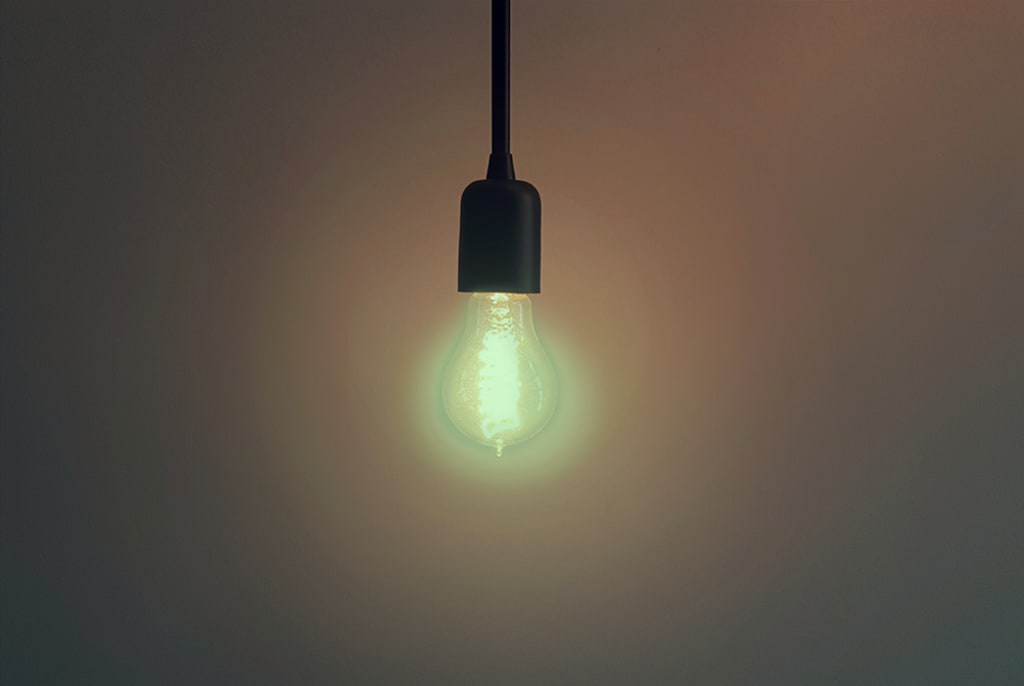 The same lightbulb that made its home in the shared living room of his old dorm, so many ways ago. I closed my eyes, recalling the way it shined beneath a yellow lampshade nestled beside a peeling leather couch. The sun was setting on our campus back then, and the only light illuminating the low ceiling of the room was mixed with hues of emerald, bathing everything in its artificial glow.
