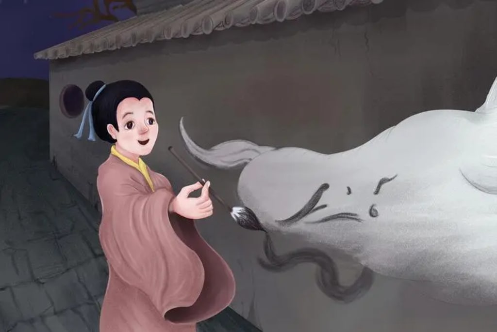 There is no impermeable wall in the world, and the news soon reached the ears of a rich man in the neighboring village. The rich man sent two families to arrest him and force him to paint.