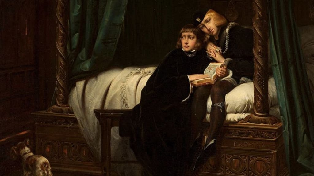 “You should not,” said Sir John, “because everyone believes them to have been dead for at least a year. They are the former King Edward V and his brother Richard.”