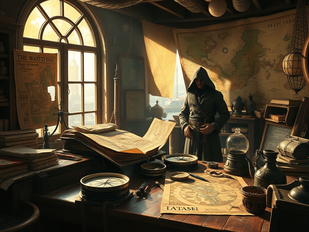"I’ve heard of your talents, Mapmaker," Calder began, placing a faded, half-torn map on her cluttered desk. "I need a chart to the uncharted—a path to the Veil Isles."